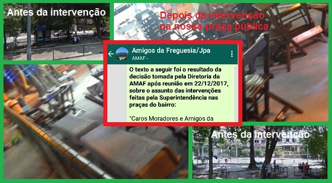 Foi assim que a AMAF enviou hoje (15/12) uma mensagem Vide cópia abaixo), via Grupo de Amigos da Freguesia, para o Superintendente, no intuito de perguntar porque essa intervenção sem consultar os moradores foi feita desse jeito e porque até hoje não tivemos uma resposta oficial à nossa pedido também oficial protocolado em 29/12/2017?