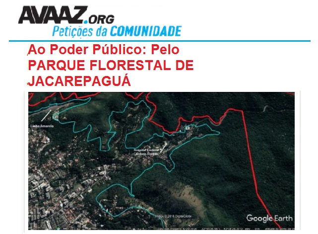 Abaixo-assinado pelo Parque Florestal de Jacarepaguá. AGORA TAMBÉM ESTA NA AVAAZ!