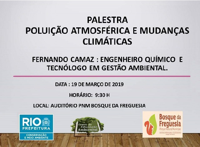 Recebemos da Gestora do Bosque a programação de uma Palestra sobre Poluição Atmosférica e Mudanças Climáticas.