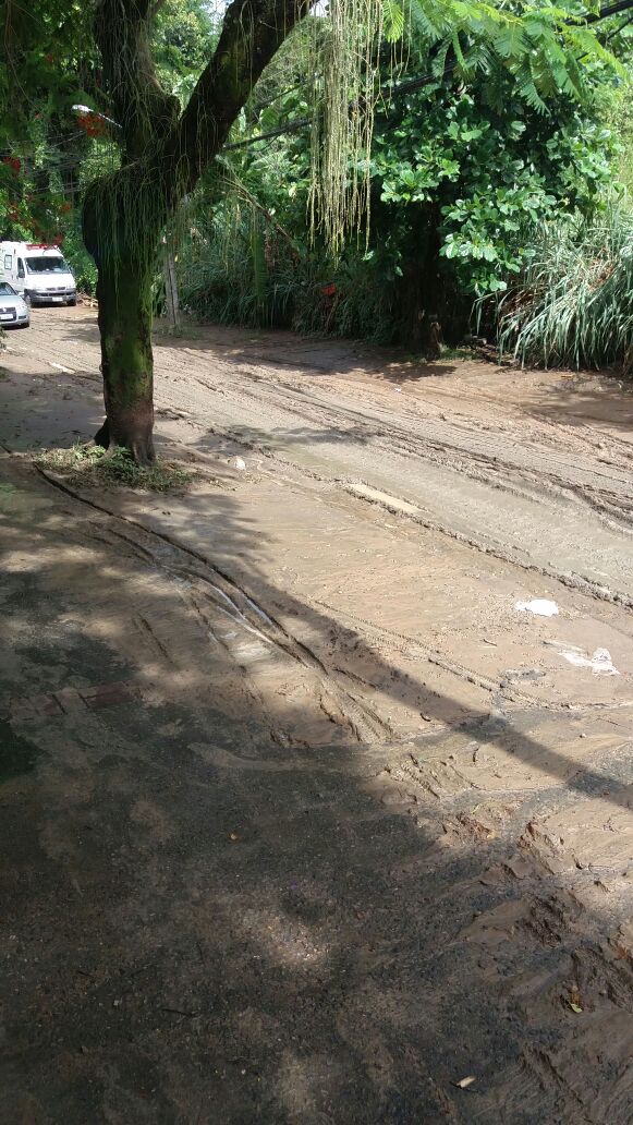 Estrada do Bananal perto da Três Rios (Condomínio Victoria) onde o Rio Panela foi canalizado e coberto. Esse Rio atravessa a Bananal e Geminiano Góes. Provavelmente a areia e terra que descem das partes altas do rio estão obstruindo essa canalização.