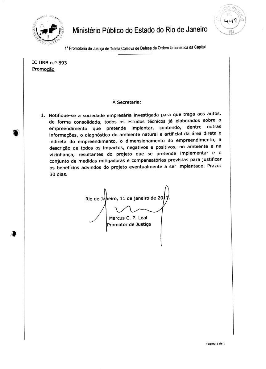 Em 11/01/2017 o Ministério Público Estadual pediu à Nigri os estudos técnicos de impacto no meio ambiente e na vizinhança. Leia abaixo o documento do MPE: