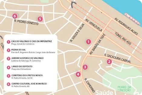 Inclui os seguintes espaços vinculados à História, Arqueologia e à cultura afro-brasileira da Antiga Região Portuária da Cidade do Rio de Janeiro: