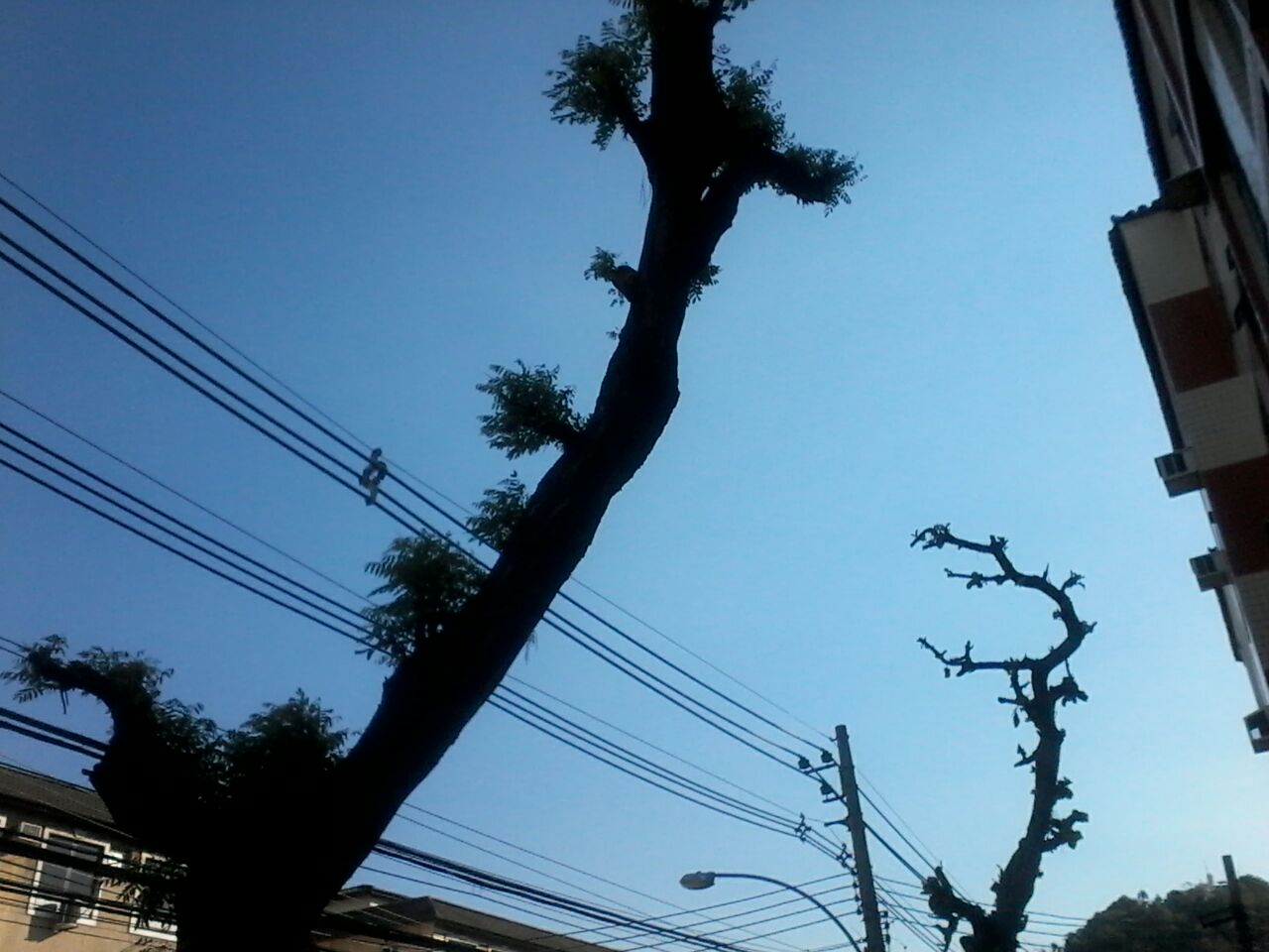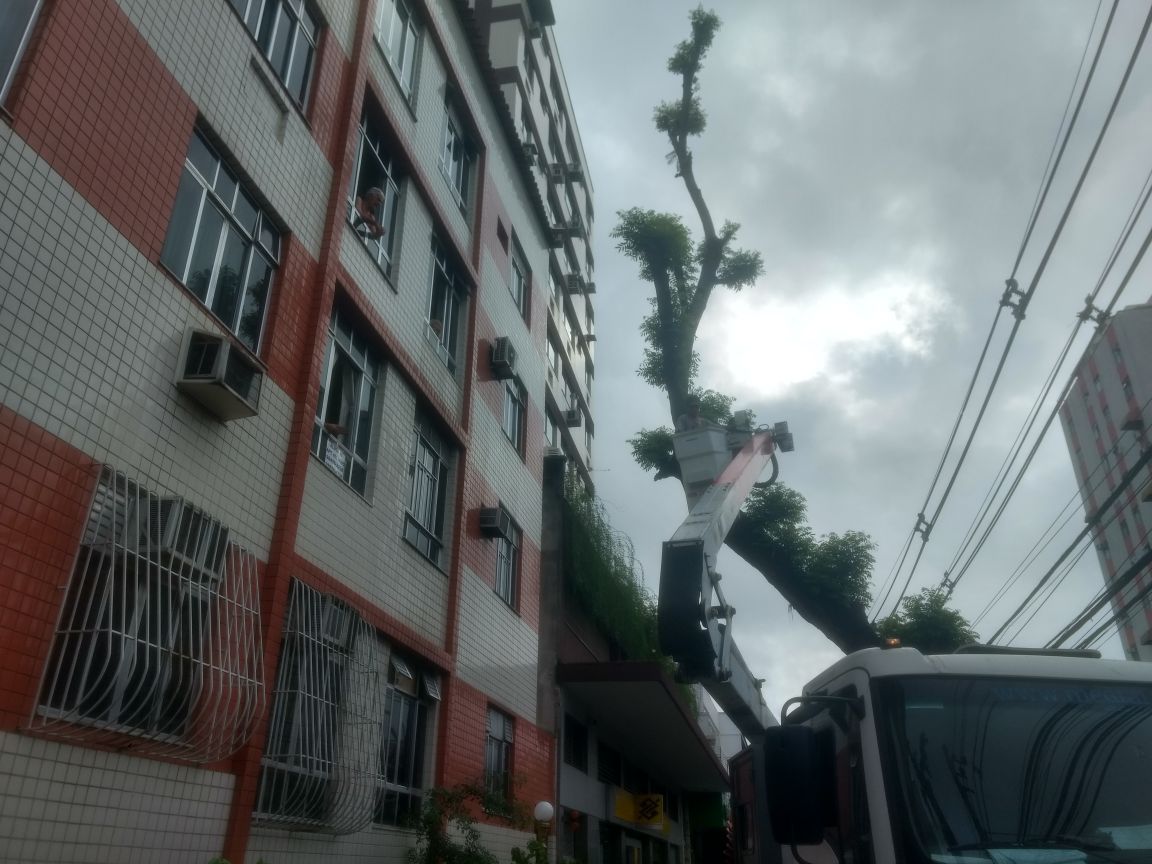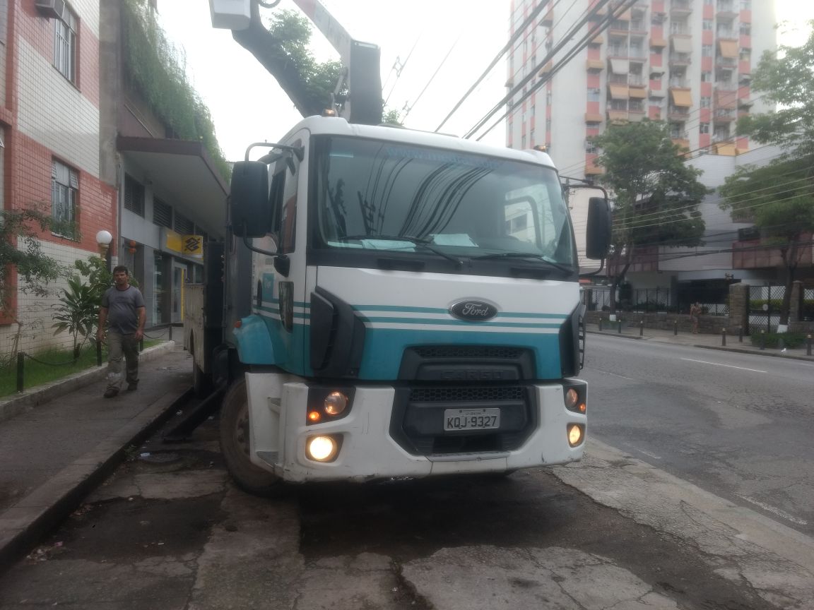 Questionado o serviço pelos moradores, um deles ex-Superintendente da Light que conhece muito bem o processo legal e técnico da poda de árvores, e face a falta de documentação para tal serviço, o caminhão foi embora.