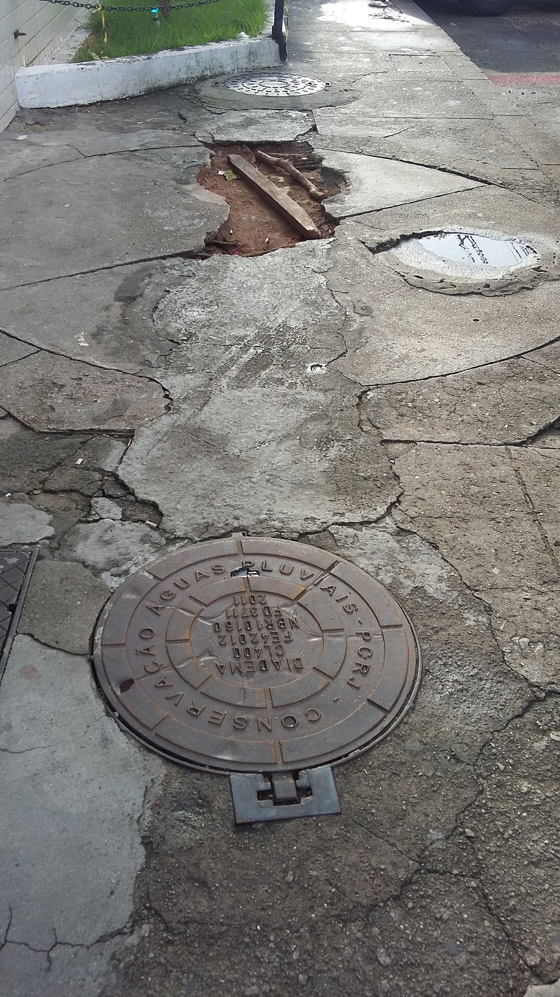 Problema similar relacionado com os Serviços Públicos, o Síndico tem com relação ao esgoto que tem ocasionado buracos na calçada colocando também os transeuntes em risco de acidentes.