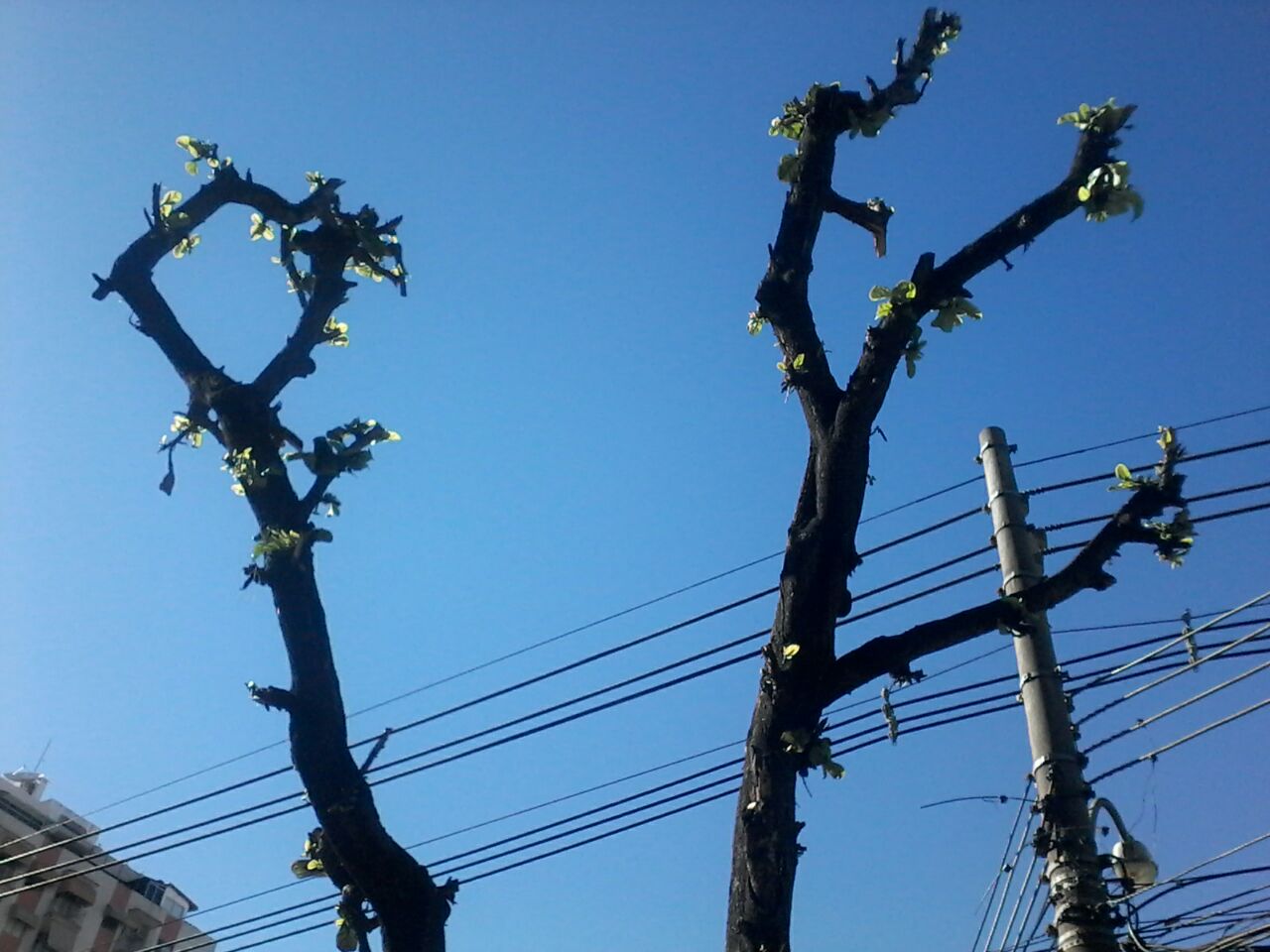Constataram que as árvores resistiram e começavam a mostrar a vida com as folhas que tinham sumido na poda do dia 19/03.