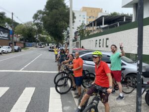 Também debatemos sobre a falta de educação de alguns motoristas atrelada à cultura do automóvel, a falta de sinalizações que poderiam dar mais segurança ao ciclista na região, a falta de bicicletários nas estações de BRT e em outros locais e ciclovias do Plano Cicloviário que seriam prioritárias para a mobilidade efetiva em Jacarepaguá.
