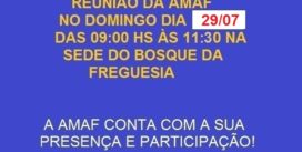 Reunião da AMAF em 29 de julho na sede do Bosque da Freguesia