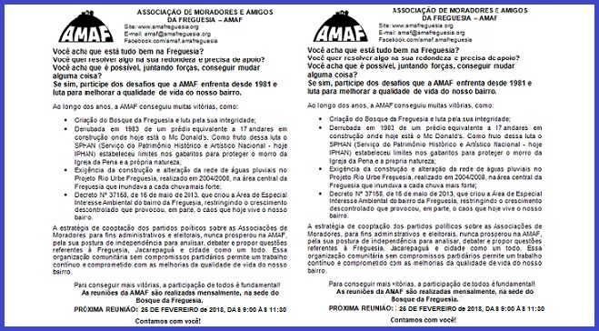 Reunião da AMAF no dia 25 de fevereiro! Divulgue e Participe!
