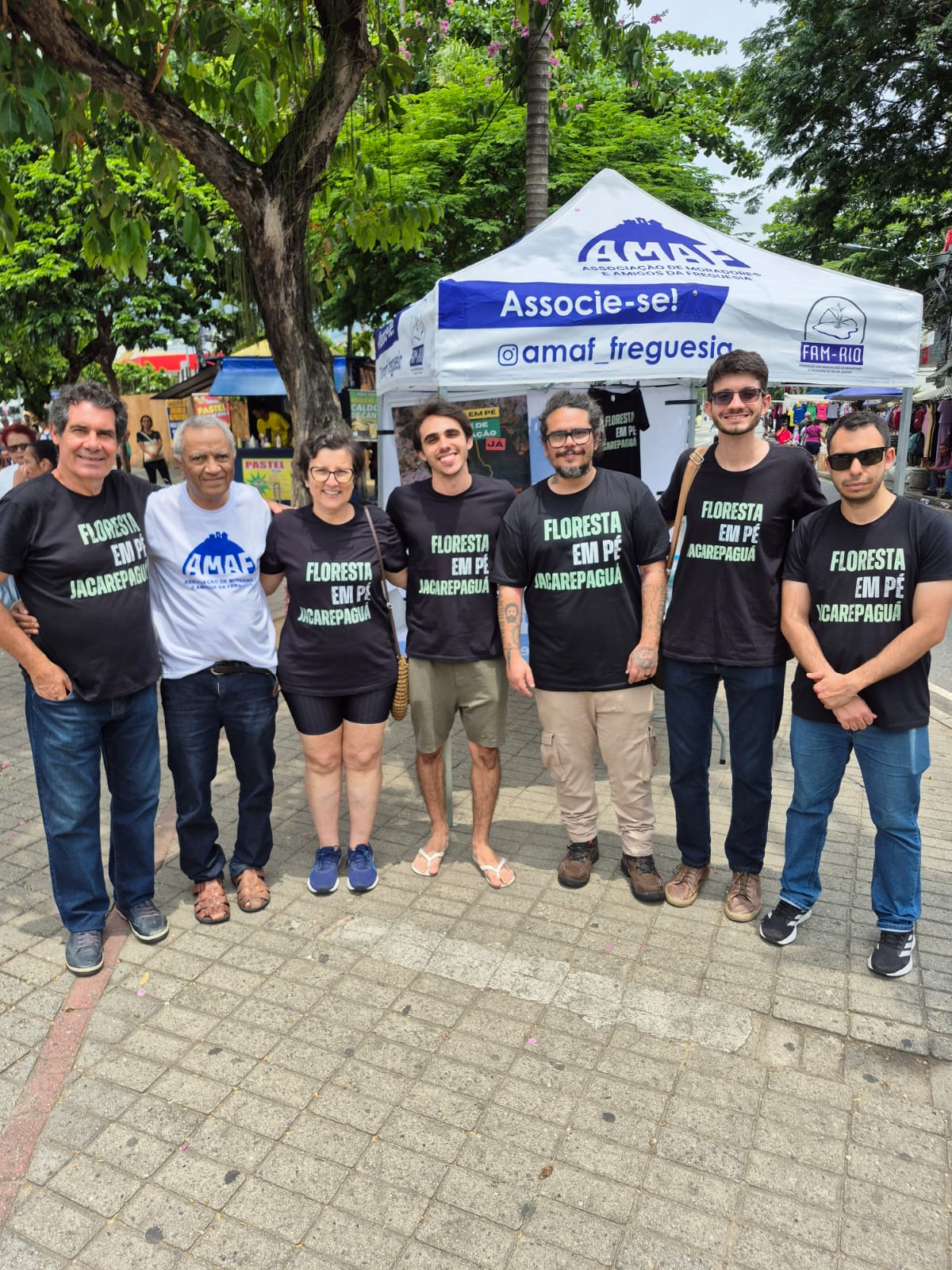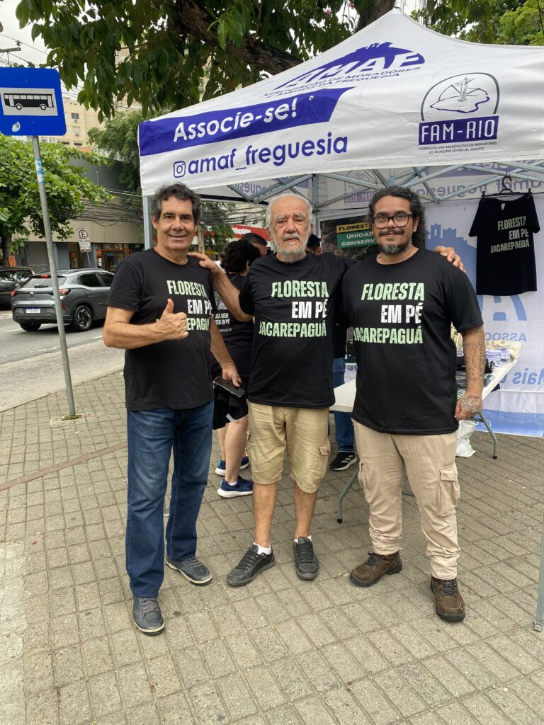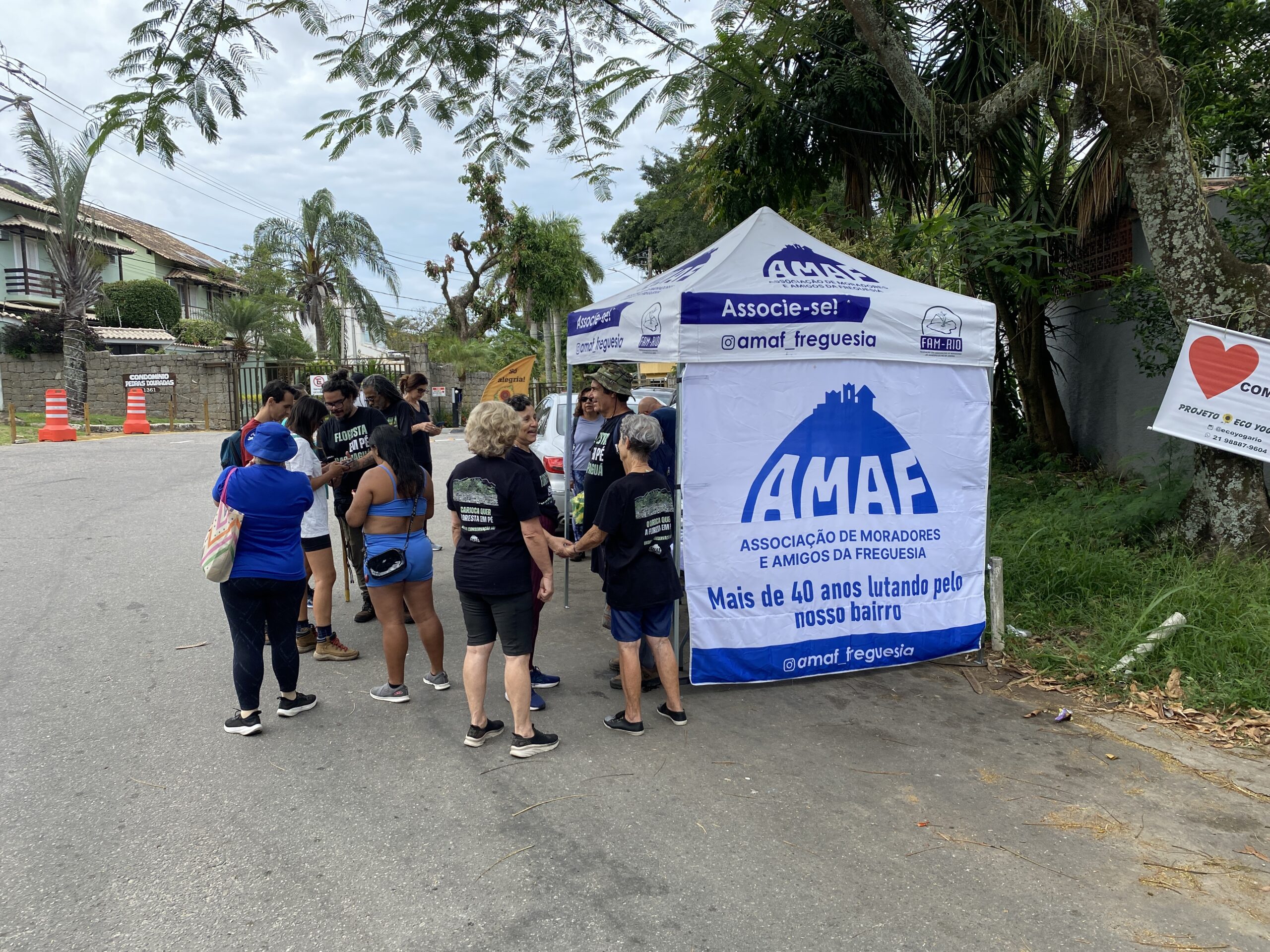 16/11/2025. Grupo para a trilha do Rio Papagaio à frente da sua entrada na Estrada do Quitite. Ao fundo, o Morro Mata-Cavalo (com a Pedra do Urubu).Thiago Santi dando orientação ao início da trilha, na concentração. 16/11/2025Barraca da AMAF em Estrada do Quitite, na concentração, 16/11/202516/11/2025. Juliana Fernandes diante de uma das primeiras cachoeiras da trilha para explicar sobre questões de educação ambiental a outros presentes.15/11/2025. Edmilson Omena de costas diante de barraca da AMAF em Praça Jorge da Costa Pinto.15/11/2025. Da esq p/ dir, Antonio Ribeiro, Edmilson Omena e Hélcio Junior diante de barraca da AMAF em Praça Jorge da Costa Pinto.15/11/2025. Transeunte conversando (à esquerda) com Gabriel Finotti (aos fundos) e Antonio Ribeiro (primeiro plano à direita).15/11/2025. Maurith Moraes (à esq) e Sidney Teixeira (à direita).16/11/2025. Hélcio Jordão Júnior de costas na trilha do Rio Papagaio15/11/2025. Mesinha da AMAF em Praça Jorge da Costa Pinto. Da esq p/ dir, Antonio Ribeiro, Antonio Segio Soares, Estela Maria de Oliveira, Yuri Leal, Hélcio Jordão Júnior, Sidney Teixeira Jr. e Gabriel Finotti